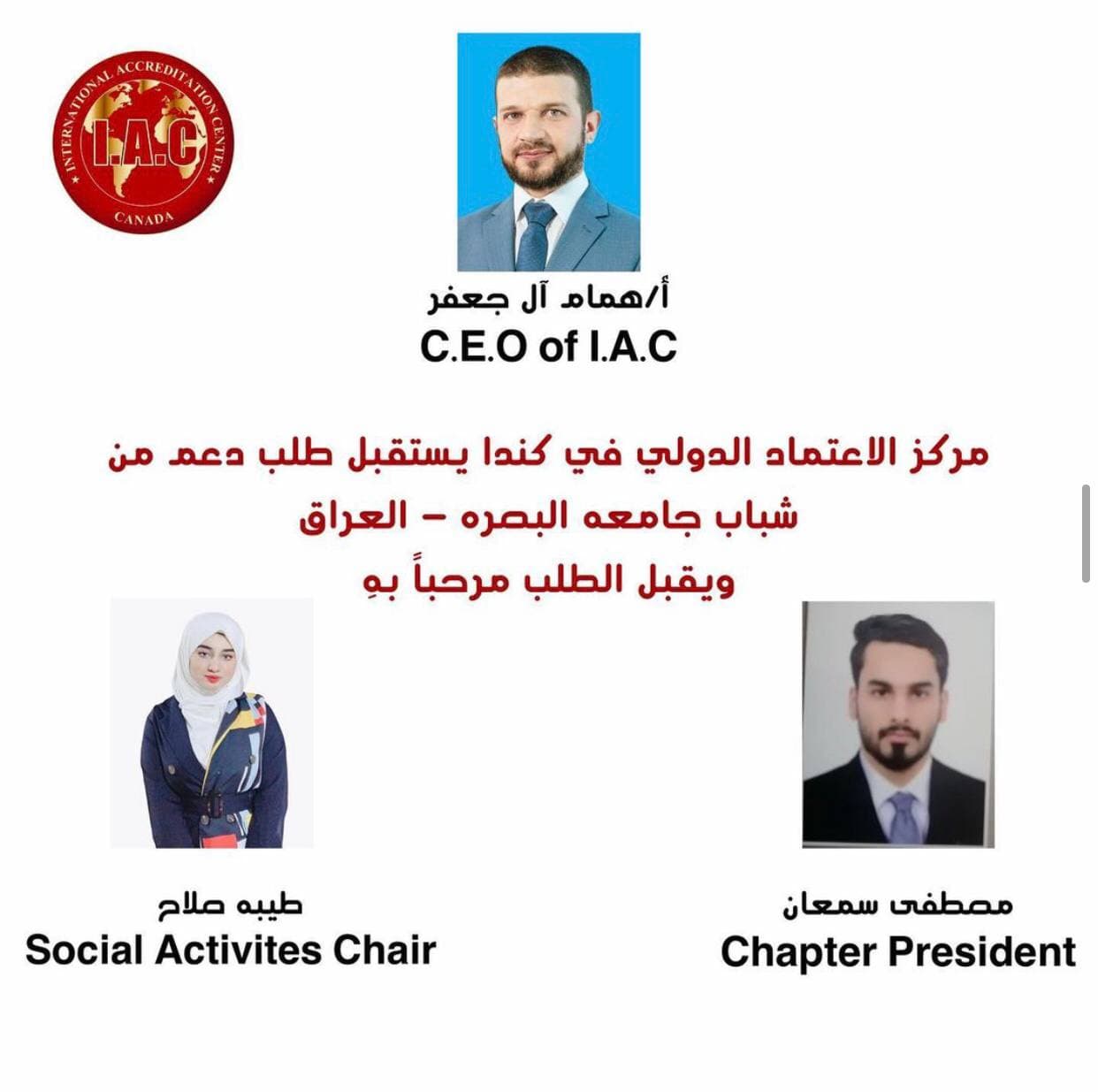 International Accreditation Center in Canada receives support request from Basra University youth - Iraq and accepts the request welcome